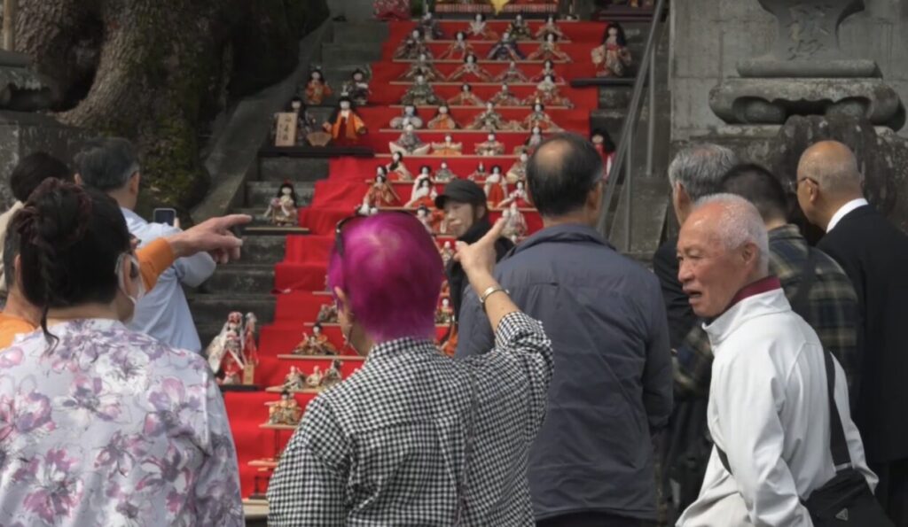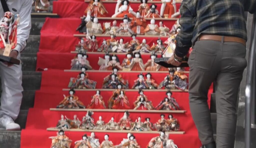 石段に並ぶお雛様たちは、