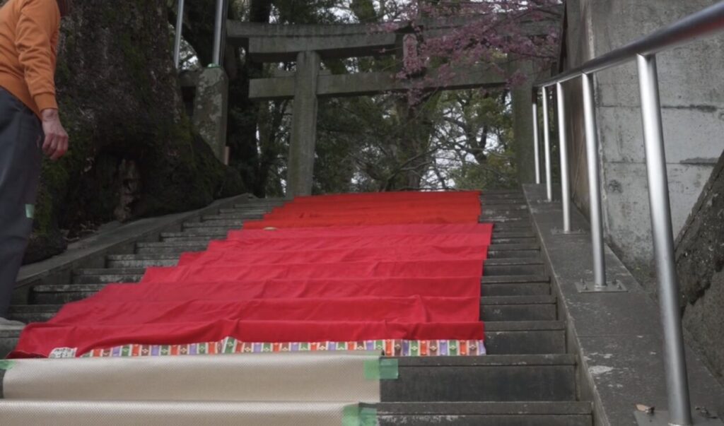 今宮神社の階段にお雛様がつどいます。